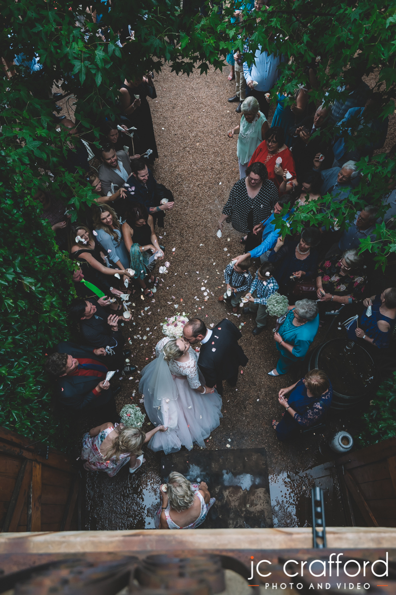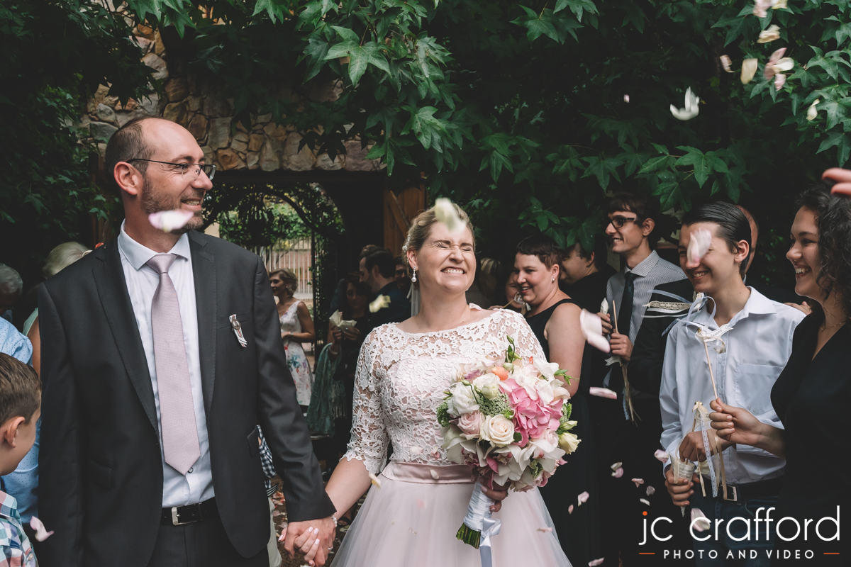 We nearly didn’t have a photoshoot though. The rain was pelting down during the ceremony, and then it stopped just as suddenly as it started. Just in time for Elsa and Abri to walk out of the chapel where their friends and family were waiting with rose petals.