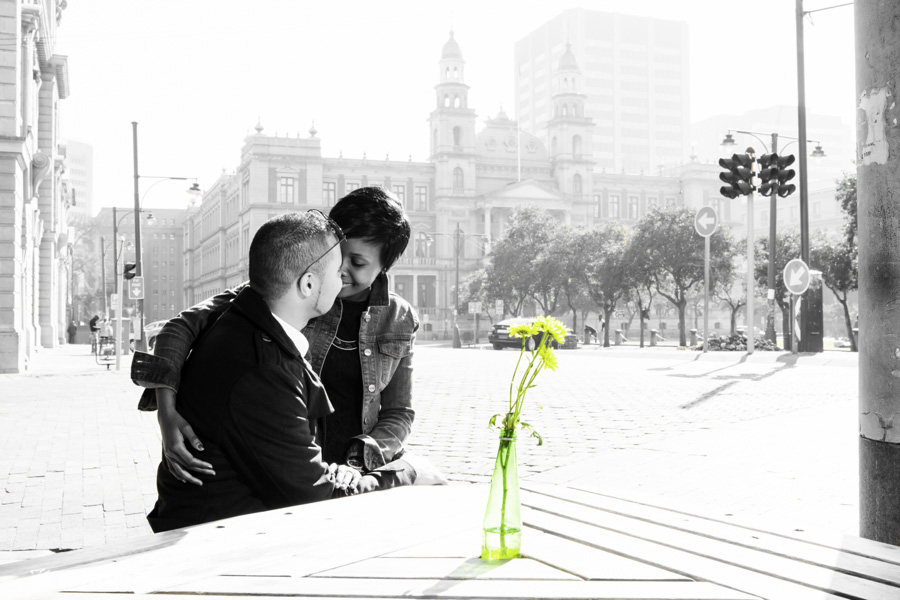 A couples photo shoot in the streets of Pretoria. This is what Fernando and Khanyi wanted for their pre wedding photo shoot, and that’s what they got. We had no specific idea where we were going, we were just driving around, and if we saw a nice place we would stop, get out and take a couple of photos there. I must admit it was a lot of fun. We were a little bit hesitant at first because of the attention that we got, but we soon felt like celebrities and just enjoyed it.