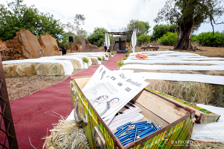 Some off the other things I liked was the popcorn that they’ve used instead of rose petals. The ceremony was also outside under some huge trees and next to old ruins. very special indeed. The bride arrived on the back of a wagon pulled by a tractor.