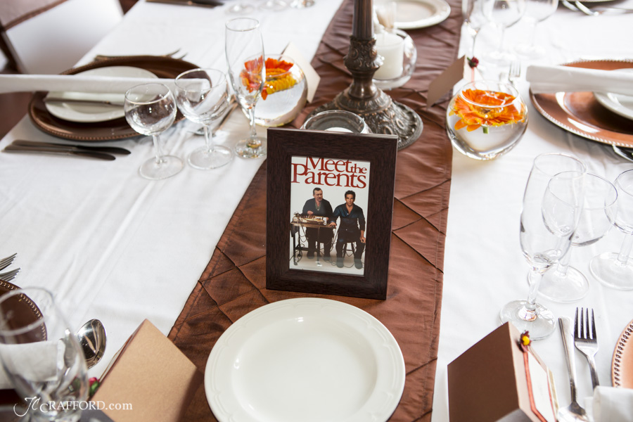We were the photographers and videographers at the wedding. Two things were very different for me at their wedding. They didn’t have the normal way of naming or numbering the tables. Each table was named after a movie. Gerrie was VERY romantic, and instead of just slipping the ring unto her finger in church, he actually went unto his one knee, and then put the ring on…nice one Gerrie.