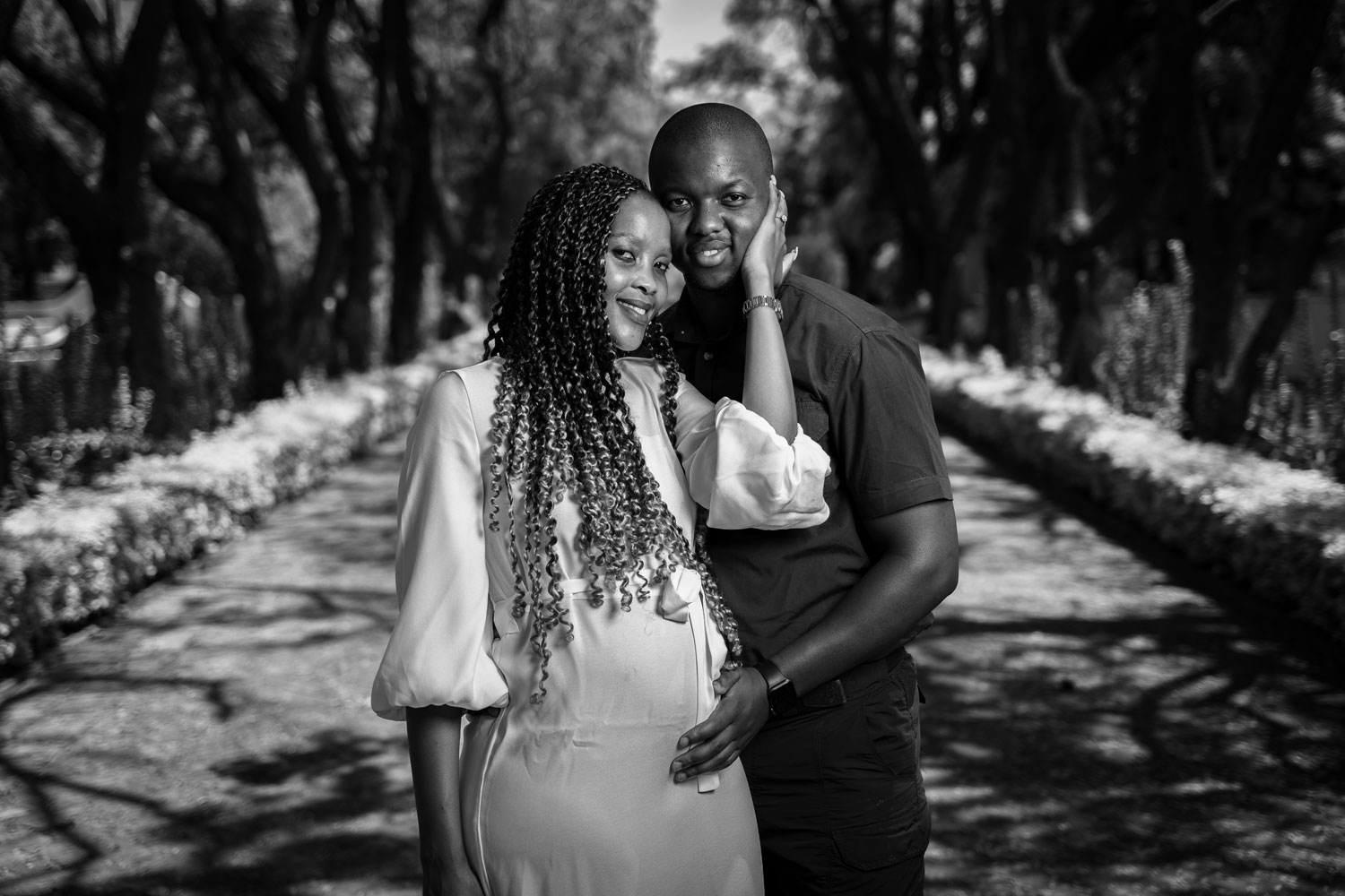 It took a couple of months to finally get Shoki and Buyambo in front of my camera. At first, we were going to photograph their wedding in April 2020. Then Covid struck and South Africa went into lockdown. We eventually photographed their wedding in December 2020. But before this, we met them at Kievits Kroon in Pretoria for a pre-wedding shoot.