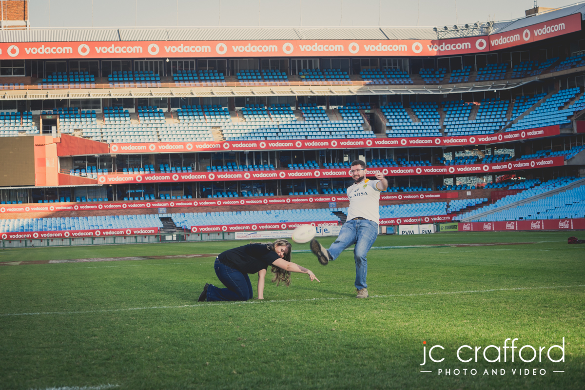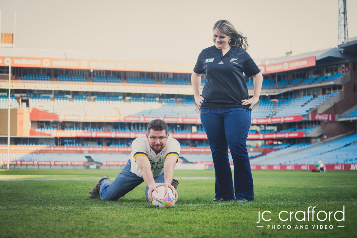 Rick & Charlene are getting married one of these days. They decided they wanted something different for their pre-wedding photo shoot. Being avid rugby supporters they wanted to do it at Loftus. We got the necessary authorization, and had a VERY unique pre wedding shoot.