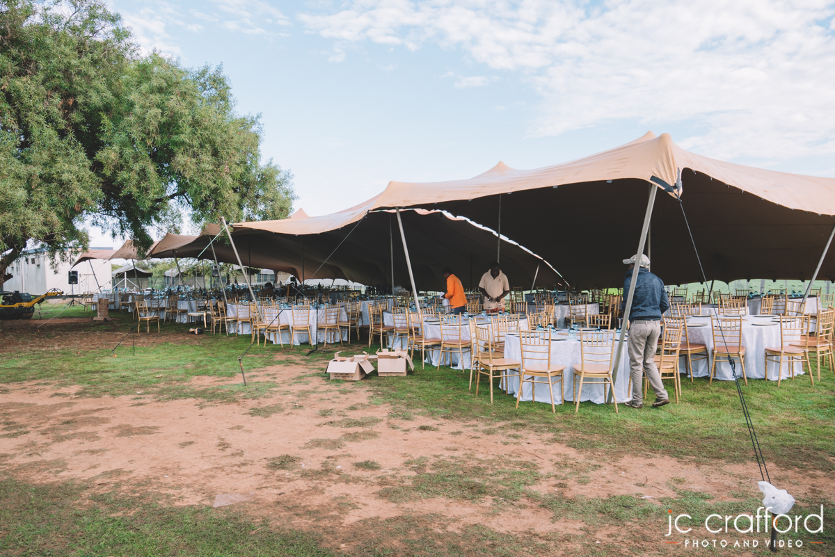 The Mothibatsela’s pull out all the stops on this one. They got a firm from Johannesburg to come over and pitch 50 luxury tents, each with its own shower and toilet for all the guests that were coming to the wedding.